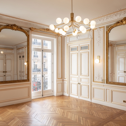 Pour ces plateaux de bureaux situés avenue de l’Opéra, au cœur d’un haut lieu du patrimoine parisien, la rénovation a consisté à révéler la finesse des boiseries et des dorures dans une ambiance lumineuse et contemporaine. Le principal enjeu résidait dans l’intégration esthétique de l’ensemble des dispositifs techniques nécessaires au fonctionnement réglementé des bureaux.