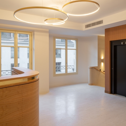 Requalification d’immeuble de bureaux emblématique à Saint-Germain-en-Laye, à travers une rénovation complète des espaces intérieurs et la mise en valeur de ses façades. Le projet a permis d’offrir des environnements de travail plus contemporains, lumineux et fonctionnels. La façade, restaurée soigneusement par de compagnons chevronnés spécialisés en monuments historiques, rayonne désormais à proximité de l’église et du château. Une intervention contemporaine en analogie à la l’élégance de l’immeuble.